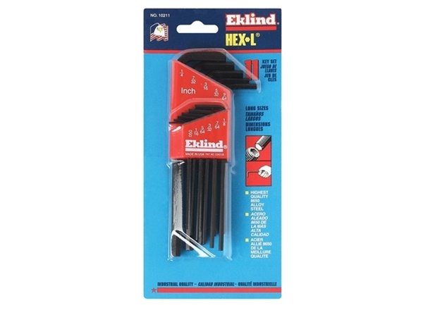 12 long series imperial hexagon keys: 3/64, 1/16, 5/64, 3/32, 7/64, 1/8, 9/64, 5/32, 3/16, 7/32, 1/4, 3/8"