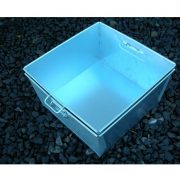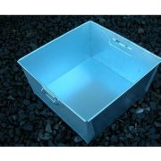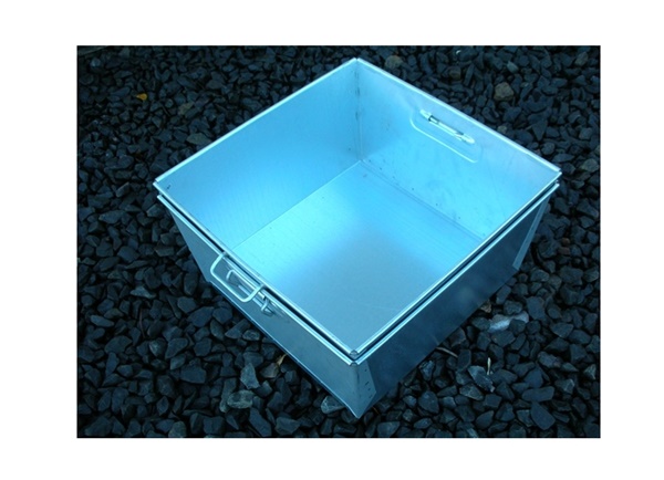Manufactured from 1mm mild steel plate with spot welded tapered sides and lipped upper edge. The tapered sides allow the pans to be nested for storage.