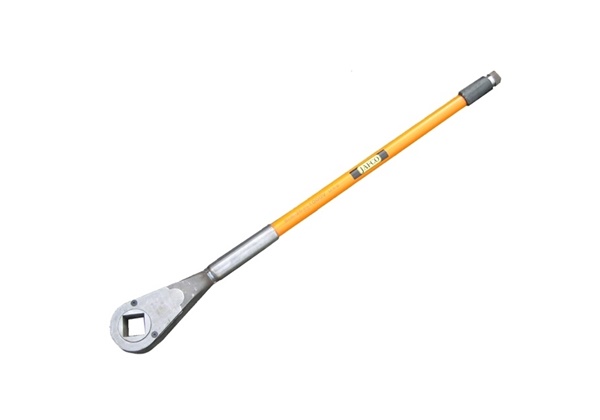 0039/052306 Reversible ratchet spanner Network Rail Reference: 0039/052306 Description: Reversible ratchet spanner with remote switching for 1.5/8" square nuts. 36" overall length.