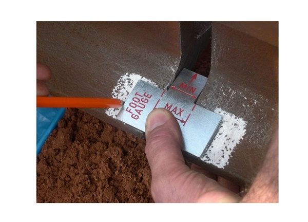 The minimum and maximum lines help to centralise the gauge and also confirm that the gap between the rails is within tolerance.
