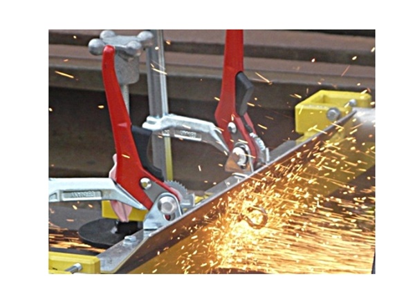 Ratchet lever clamps for securing the Matweld grinding frame in position.