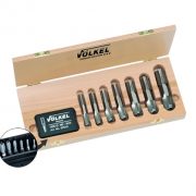 Each tap has a roughing tap profile at one end and a finishing tap profile at the other. Used for producing either new threaded holes or for cleaning and repairing damaged threads. The taps can be used either with a spanner, hexagon key or with a ratchet handle.