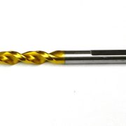 7mm Ø (9/32″) High Speed Steel Drill with 8% cobalt, Titanium Nitride coating and modified point angle.